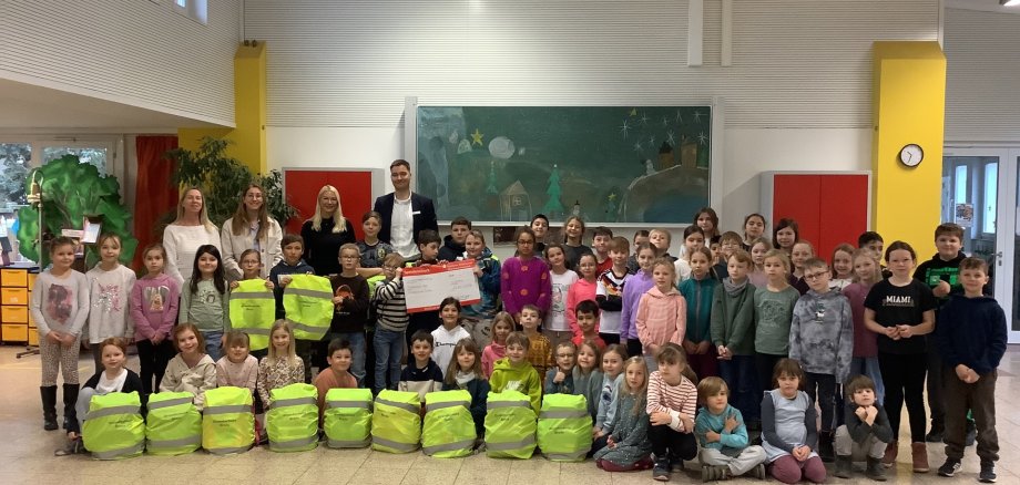 Um die Sichtbarkeit der Kinder auf dem Schulweg zu verbessern, wurden für alle Schülerinnen und Schüler Schulranzen-Überzieher organisiert. Die Kinder sollen die Überzieher in der dunklen Jahreszeit möglichst regelmäßig auf dem Schulweg tragen. Die Initiative ging von der Schulelternsprecherin Katharina Kohl aus. Gesponsert wurden die Überzieher von der Sparkasse Mittelmosel, die Beschriftung übernahm Frau Hanna Stoffel von „Meinzigartig“. Am Montag, den 12.01.2026, überreichte Herr Görgen von der Sparkasse Mittelmosel die Überzieher offiziell an die Kinder. Dieser Besuch unterstreicht die enge und wertvolle Zusammenarbeit zwischen Schule, Elternschaft und regionalen Partnern. Gemeinsam leisten sie einen wichtigen Beitrag dazu, den Schulweg unserer Kinder sicherer zu machen. Die Schulgemeinschaft bedankt sich bei allen Beteiligten ganz herzlich für die Unterstützung.